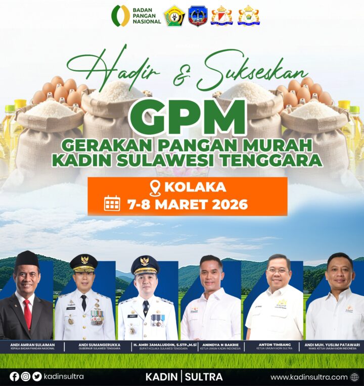 Kadin Indonesia bersama Badan Pangan Nasional, Kadin Provinsi Sulawesi Tenggara dan Kadin Kabupaten Kolaka menggelar Gerakan Pangan Murah pada: 7-8 Maret 2026 Di Kolaka Gerakan pangan murah kadin merupakan inisiatif strategis untuk menstabilkan harga pokok dan menekan inflasi di berbagai daerah, terutama menjelang Lebaran 2026. Selain menjaga keterjangkauan pangan dan membantu daya beli masyarakat, gerakan […]