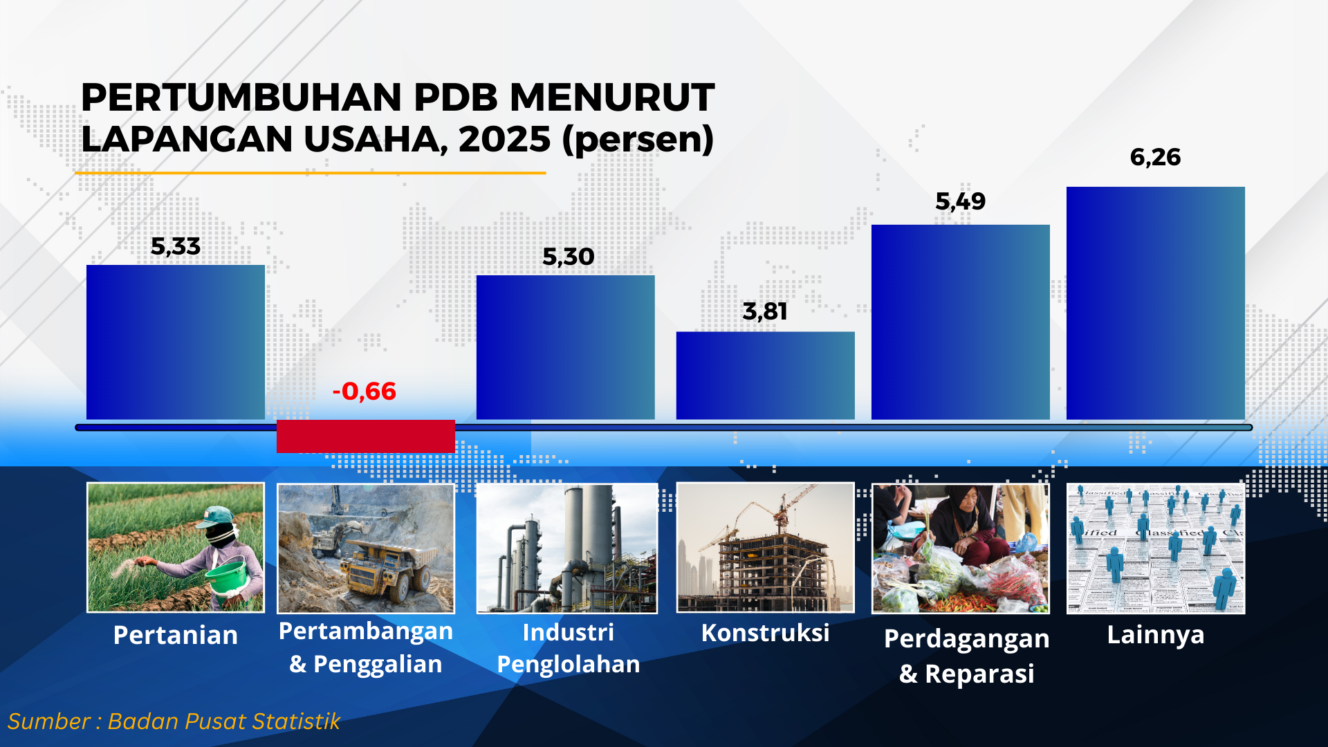 Leading sectors ekonomi Indonesia seperti Industri Pengolahan, Pertanian, Perdagangan,Pertambangan, dan Konstruksi terus tumbuh.