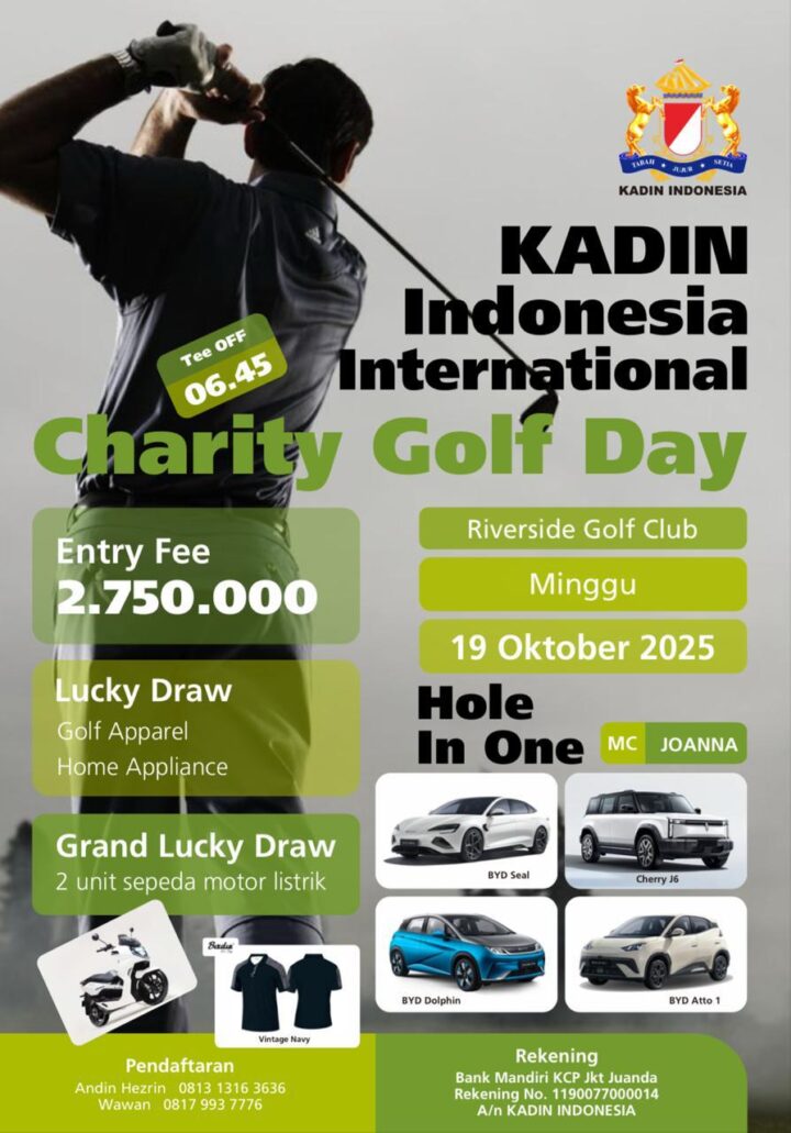 Dalam rangka mempererat silaturahmi, memperkuat jejaring, serta mendukung diplomasi ekonomi Indonesia melalui pendekatan sport diplomacy, Kamar Dagang dan Industri (Kadin) Indonesia akan menyelenggarakan kegiatan Kadin Indonesia International Charity Golf Day 2025, yang akan dilaksanakan pada: Minggu, 19 Oktober 2025 Pukul 06.00 WIB – selesai Di Riverside Golf Club, Bogor Kegiatan ini akan dihadiri oleh para […]