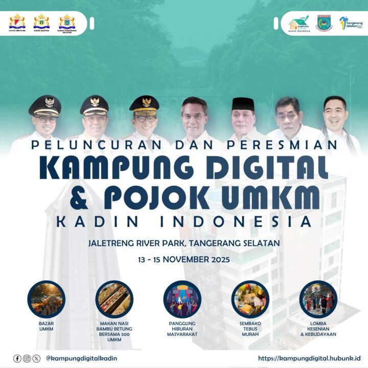 Kamar Dagang dan Industri (Kadin) Indonesia akan menggelar acara Peluncuran dan Peresmian Kampung Digital dan Pojok UMKM Kadin Indonesia, yang merupakan bagian dari Program Kerja Prioritas Wakil Ketua Umum Bidang Kewirausahaan UMKM Kadin Indonesia, serta wujud sinergi dengan Kadin Provinsi Banten, Pemerintah Daerah Kota Tangerang Selatan, dan Kadin Kota Tangerang Selatan. Acara tersebut akan diselenggarakan […]