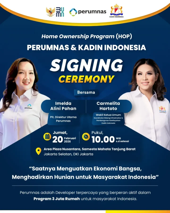 Perumnas bersama Kadin Indonesia berkolaborasi strategis dalam menghadirkan hunian bagi anggota Kadin dan seluruh masyarakat Indonesia. 🗓️ Jumat, 20 Februari 2026 ⏰ Pukul 10.00 WIB s.d selesai 📍 Area Plaza Nusantara, Samesta Mahata Tanjung Barat, Jakarta Selatan. Kolaborasi ini menjadi momentum sinergi dunia usaha dan BUMN untuk menguatkan ekonomi bangsa serta menghadirkan hunian yang berkualitas […]