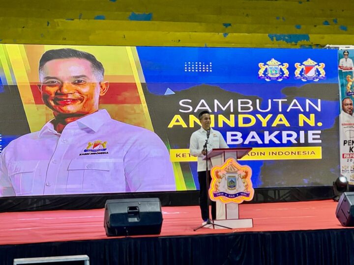 Mimika – Ketua Umum Kamar Dagang dan Industri (Kadin) Indonesia Anindya Novyan Bakrie melakukan rangkaian kunjungan kerja di Tanah Papua dengan menghadiri Rapat Pimpinan Provinsi (Rapimprov) Kadin Papua Tengah yang digelar di GOR Futsal Timika, Sabtu (18/10/2025).