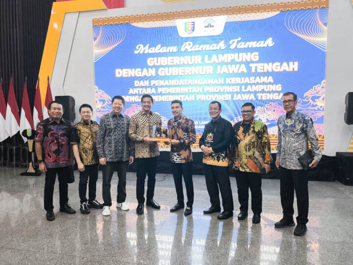 Bandar Lampung – Kamar Dagang dan Industri (Kadin) Provinsi Lampung dan Kadin Provinsi Jawa Tengah (Jateng) resmi menandatangani nota kesepahaman (MoU) dalam acara Malam Ramah Tamah Gubernur Lampung dan Gubernur Jawa Tengah serta Penandatanganan Kerja Sama antara Pemerintah Provinsi Lampung dan Provinsi Jawa Tengah yang berlangsung di Rumah Jabatan Gubernur Lampung, Mahan Agung, Bandar Lampung, Selasa (06/01/2026) malam.