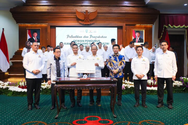 Surabaya – Kamar Dagang dan Industri (Kadin) Provinsi Jawa Timur (Jatim) menggelar pelantikan dan pengukuhan jajaran dewan pengurus masa bakti 2025–2030 yang digelar di Gedung Negara Grahadi, Surabaya, Minggu (1/2/2026).